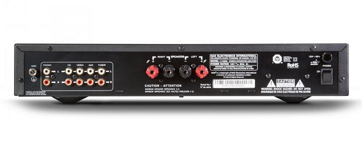 Vstupy | 2 x pár repro konektorů, 1 x MM Phono RCA (citlivost 2.95 mV pro 40 W výkonu do 8 ohm), 4x stereo linkový RCA, 1 x 3.5 mm jack |