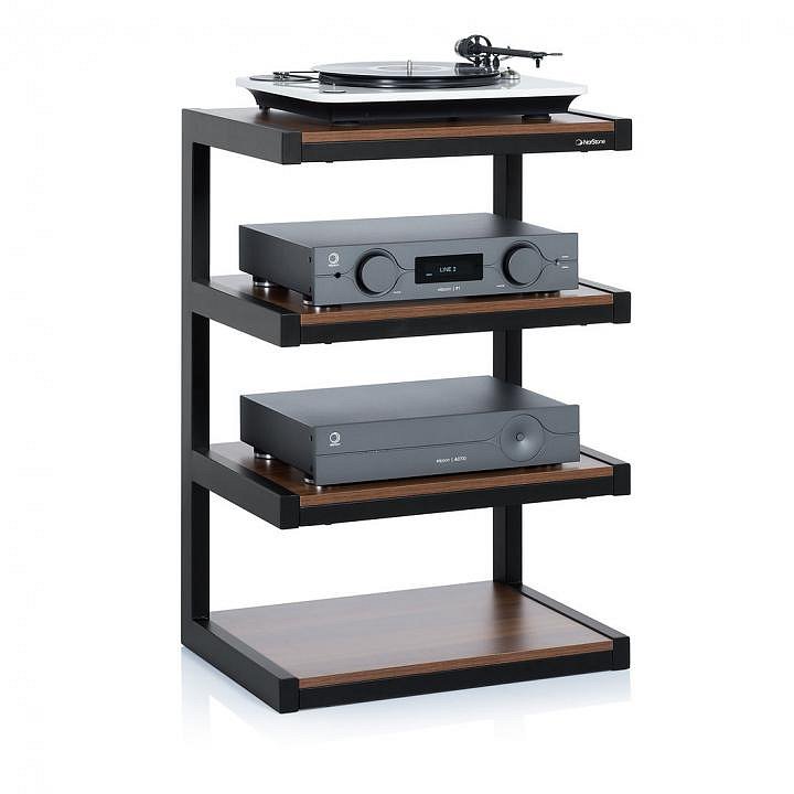Esse Hifi je elegantí a funkční 4 dílnou policí, která čeká na uložení vašeho AV vybavení. Horní police má zasílenou nosnost, a tak není problém na ni umístit gramofon nebo plochou obrazovku ve velikosti až 32 palců. Maximální zatížení vnitřních polic je 20 kg, zatímco horní police unese až 40 kg.