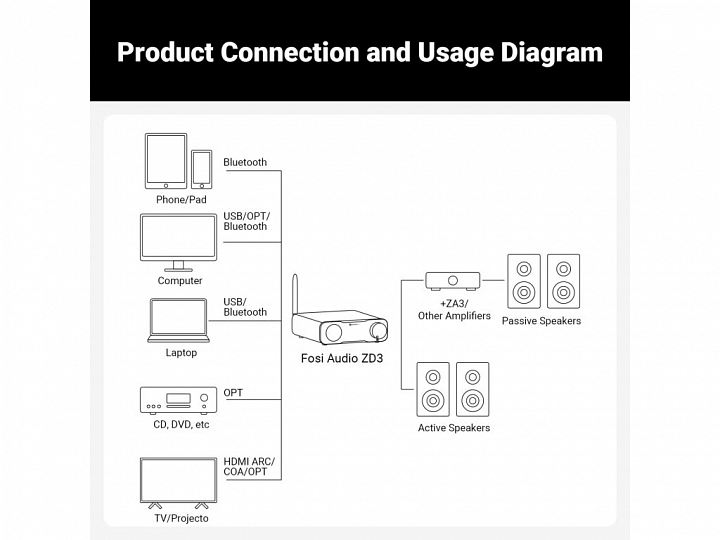 Fosi Audio ZD3 je vysoce kvalitní stolní DAC navržený pro uživatele, kteří chtějí maximální kvalitu převodu zvuku, široké možnosti připojení a flexibilitu při ladění výsledného zvuku. Díky plně vyvážené architektuře, silnému digitálnímu zpracování a prémiovým komponentům nabízí ZD3 úroveň, která se vyrovná dražším HiFi systémům.
