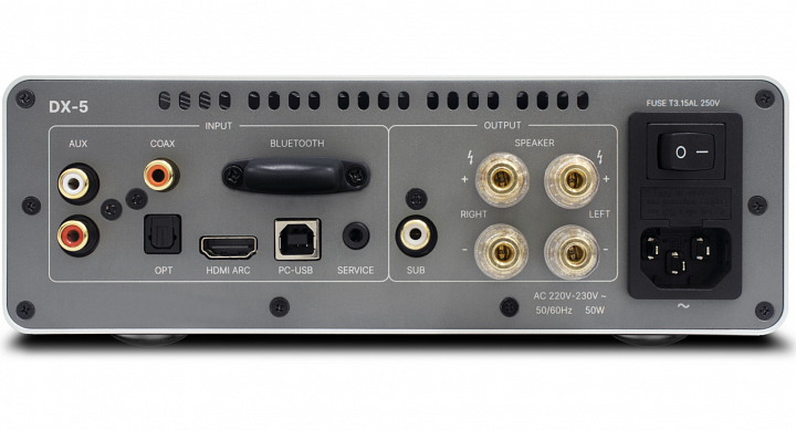 DX-5 je vybaven barevným TFT displejem, 6,35mm jackem pro sluchátka a obsahuje intuitivní dálkové ovládání, které je ideální pro milovníky hudby a domácí zábavy.