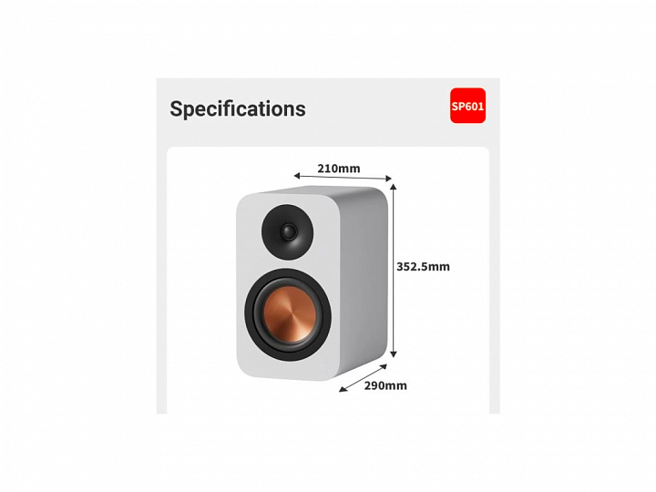 SP601 využívají 6,5" nízkofrekvenční měnič pro bas a středy a 1,5" textilní kalotový tweeter pro výšky. Výsledkem je vyvážená reprodukce, bez nepřirozeného zdůraznění či zahuhlanosti. Bass-reflex na zadní straně pomáhá rozšířit spodní pásmo bez ztráty kontroly, takže reprosoustavy působí „větší“, než ve skutečnosti jsou.