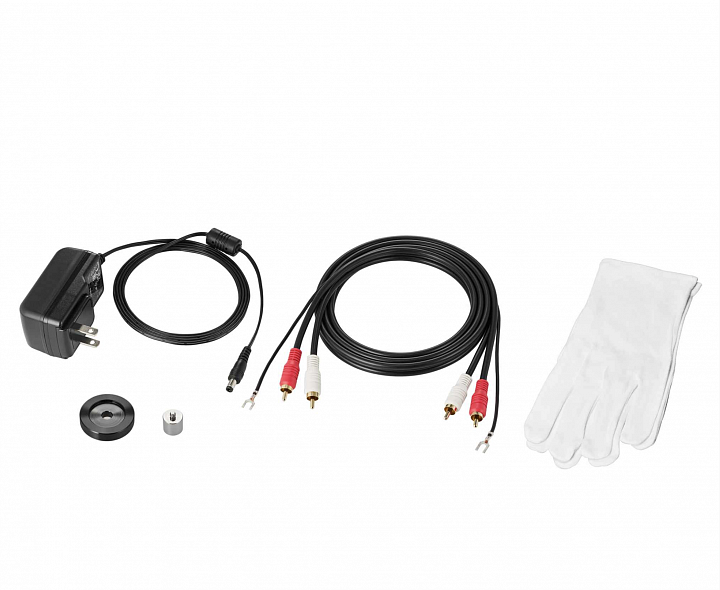 | Příslušenství | Prachový kryt, plstěná podložka, protizávaží (včetně sub-závaží pro těžší přenosky do 23,5 g), externí AC adaptér. |