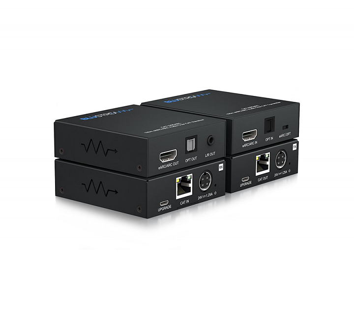 Podporuje HDMI eARC/ARC nebo optické digitální audio signály přes jeden CAT kabel až do vzdálenosti 200 m (eARC/ARC signály až do 100 m), zabudovaný DAC, CEC